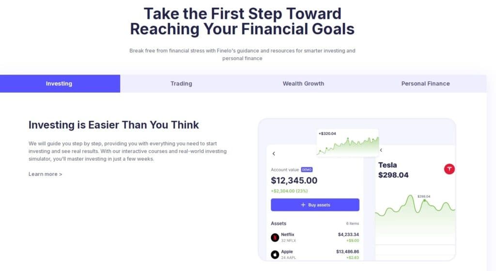 Key Differentiator: Its deeply integrated simulator. Unlike platforms that just teach theory, Finelo’s practice environment is central to the learning experience, making it the closest thing to a “flight simulator” for investing.